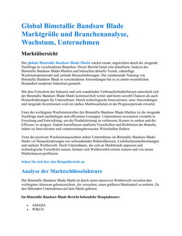 Global Bimetallic Bandsaw Blade Marktgröße und Branchenanalyse