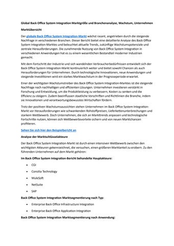 Global Back Office System Integration Marktgröße und Branchenanalyse, Wachstum, Unternehmen