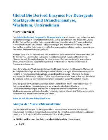 Global Bio Derived Enzymes For Detergents Marktgröße und Branchenanalyse