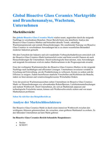 Global Bioactive Glass Ceramics Marktgröße und Branchenanalyse