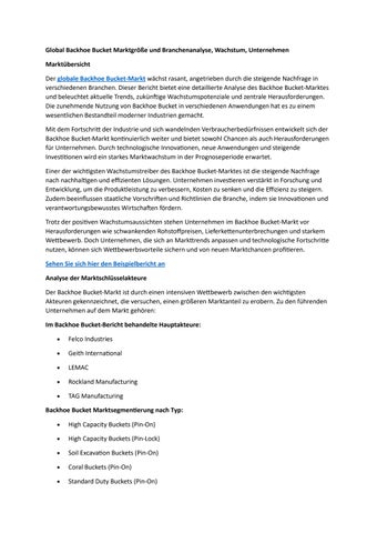 Global Backhoe Bucket Marktgröße und Branchenanalyse, Wachstum, Unternehmen