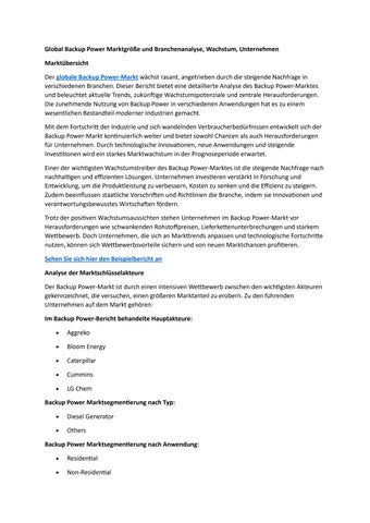 Global Backup Power Marktgröße und Branchenanalyse, Wachstum, Unternehmen