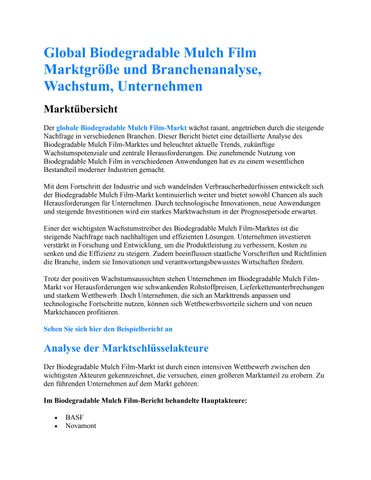 Global Biodegradable Mulch Film Marktgröße und Branchenanalyse