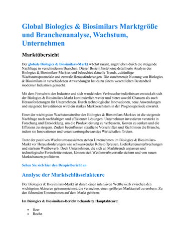 Global Biologics & Biosimilars Marktgröße und Branchenanalyse, Wachstum, Unternehmen