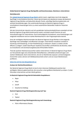 Global Bacterial Vaginosis Drugs Marktgröße und Branchenanalyse, Wachstum, Unternehmen
