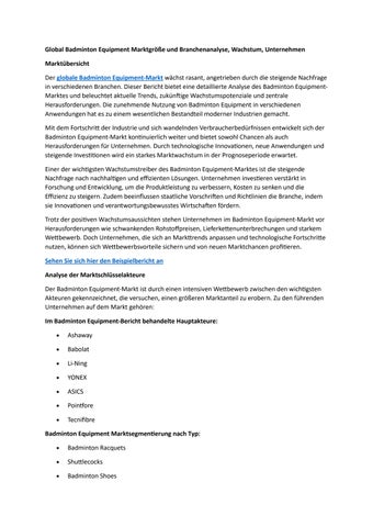 Global Badminton Equipment Marktgröße und Branchenanalyse, Wachstum, Unternehmen