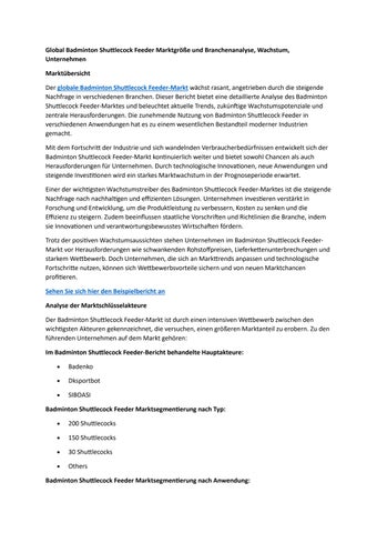 Global Badminton Shuttlecock Feeder Marktgröße und Branchenanalyse, Wachstum, Unternehmen