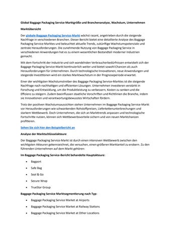 Global Baggage Packaging Service Marktgröße und Branchenanalyse, Wachstum, Unternehmen