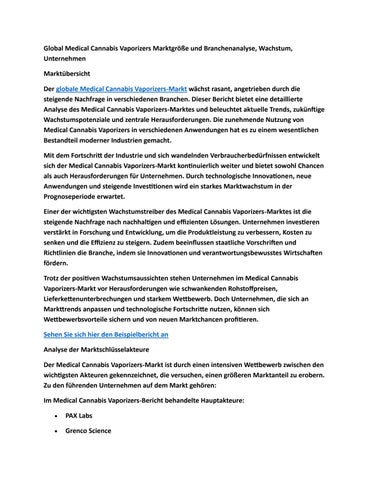 Global Medical Cannabis Vaporizers Marktgröße und Branchenanalyse, Wachstum, Unternehmen