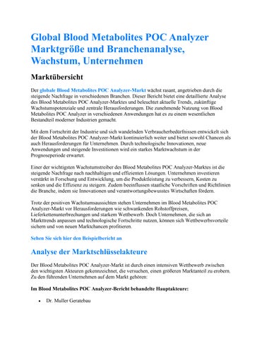 Global Blood Metabolites POC Analyzer Marktgröße und Branchenanalyse