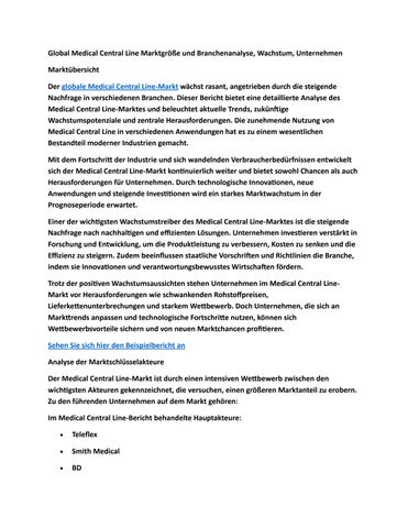 Global Medical Central Line Marktgröße und Branchenanalyse, Wachstum, Unternehmen