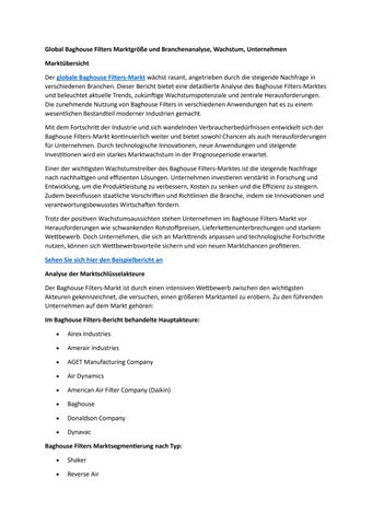 Global Baghouse Filters Marktgröße und Branchenanalyse, Wachstum, Unternehmen