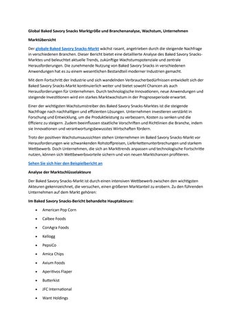Global Baked Savory Snacks Marktgröße und Branchenanalyse, Wachstum, Unternehmen