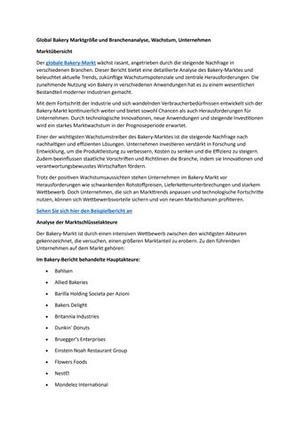Global Bakery Marktgröße und Branchenanalyse, Wachstum, Unternehmen