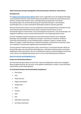 Global Automotive Bumpers Marktgröße und Branchenanalyse, Wachstum, Unternehmen