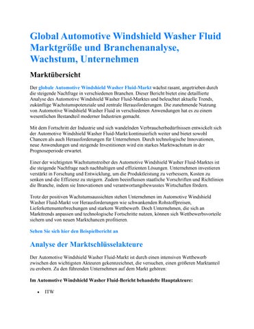Global Automotive Windshield Washer Fluid Marktgröße und Branchenanalyse
