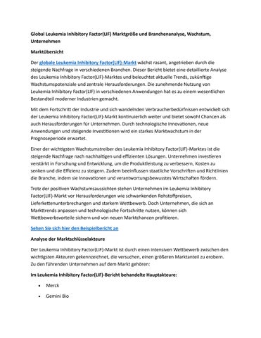 Global Leukemia Inhibitory Factor(LIF) Marktgröße und Branchenanalyse, Wachstum, Unternehmen
