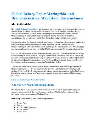 Global Bakery Paper Marktgröße und Branchenanalyse
