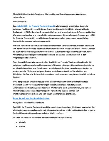 Global LHRH for Prostate Treatment Marktgröße und Branchenanalyse, Wachstum, Unternehmen