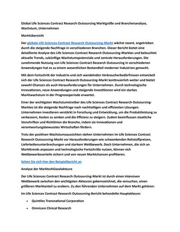 Global Life Sciences Contract Research Outsourcing Marktgröße und Branchenanalyse, Wachstum, Unterne