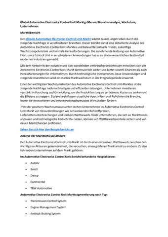Global Automotive Electronics Control Unit Marktgröße und Branchenanalyse, Wachstum, Unternehmen