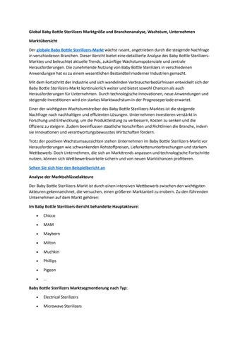 Global Baby Bottle Sterilizers Marktgröße und Branchenanalyse, Wachstum, Unternehmen