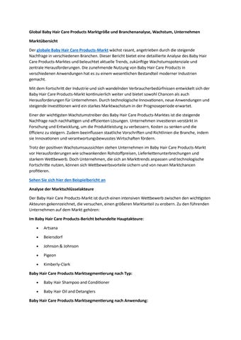 Global Baby Hair Care Products Marktgröße und Branchenanalyse, Wachstum, Unternehmen
