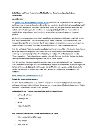 Global Baby Health and Personal Care Marktgröße und Branchenanalyse, Wachstum, Unternehmen