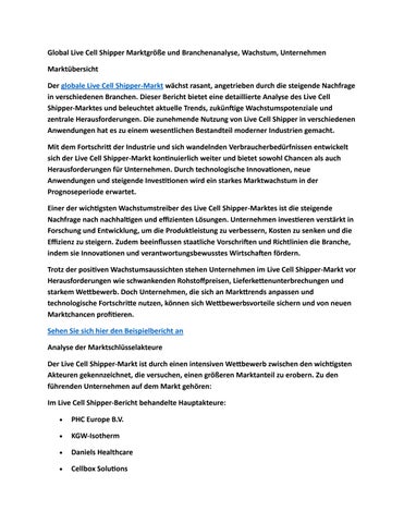 Global Live Cell Shipper Marktgröße und Branchenanalyse, Wachstum, Unternehmen