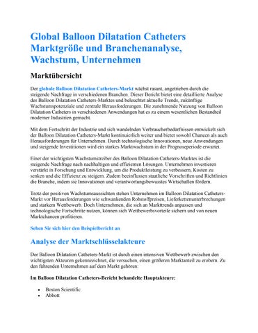Global Balloon Dilatation Catheters Marktgröße und Branchenanalyse