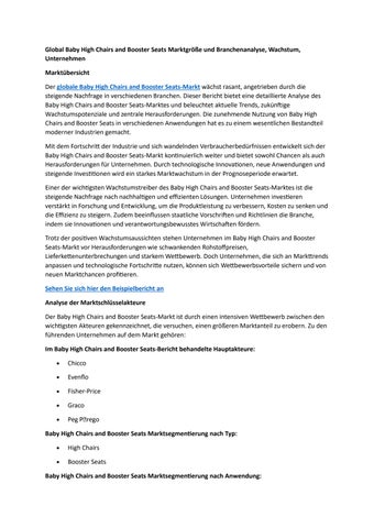 Global Baby High Chairs and Booster Seats Marktgröße und Branchenanalyse, Wachstum, Unternehmen
