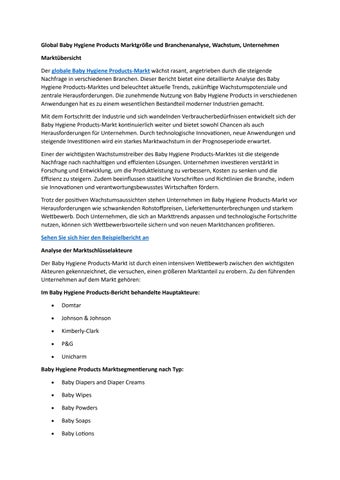 Global Baby Hygiene Products Marktgröße und Branchenanalyse, Wachstum, Unternehmen