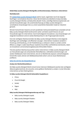 Global Baby Laundry Detergent Marktgröße und Branchenanalyse, Wachstum, Unternehmen