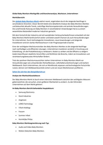 Global Baby Monitors Marktgröße und Branchenanalyse, Wachstum, Unternehmen