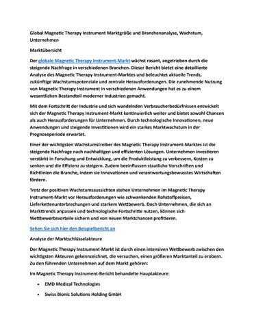 Global Magnetic Therapy Instrument Marktgröße und Branchenanalyse, Wachstum, Unternehmen