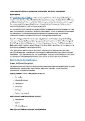 Global Baby Ointment Marktgröße und Branchenanalyse, Wachstum, Unternehmen