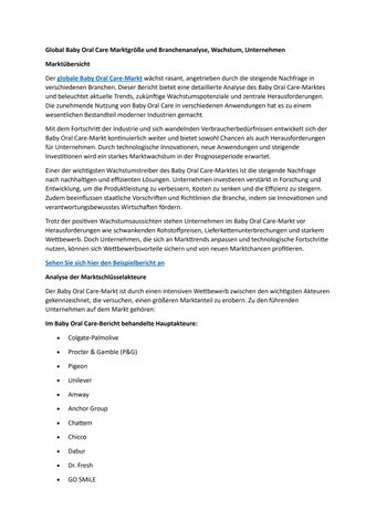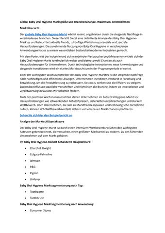 Global Baby Oral Care Marktgröße und Branchenanalyse, Wachstum, Unternehmen