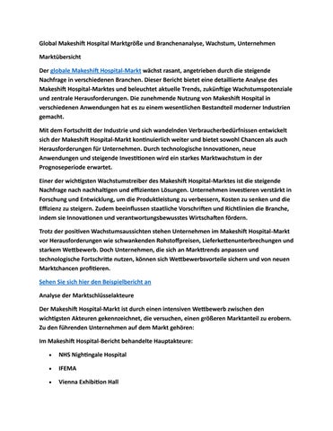 Global Makeshift Hospital Marktgröße und Branchenanalyse, Wachstum, Unternehmen