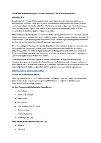 Global Baby Powder Marktgröße und Branchenanalyse, Wachstum, Unternehmen