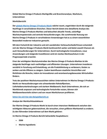 Global Marine Omega-3 Products Marktgröße und Branchenanalyse, Wachstum, Unternehmen