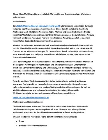 Global Mask Meltblown Nonwoven Fabric Marktgröße und Branchenanalyse, Wachstum, Unternehmen
