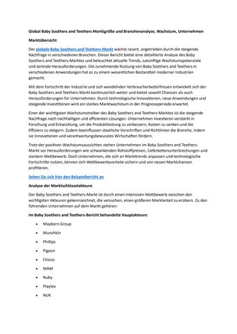 Global Baby Soothers and Teethers Marktgröße und Branchenanalyse, Wachstum, Unternehmen