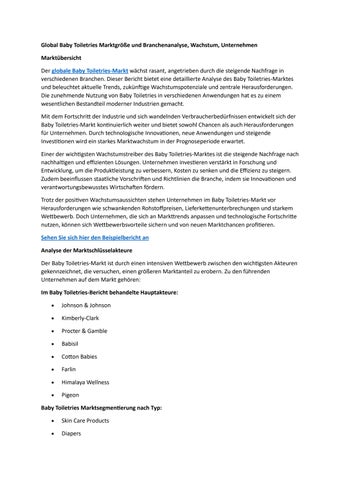 Global Baby Toiletries Marktgröße und Branchenanalyse, Wachstum, Unternehmen