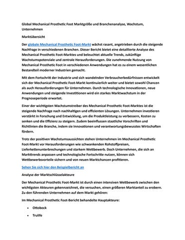 Global Mechanical Prosthetic Foot Marktgröße und Branchenanalyse, Wachstum, Unternehmen