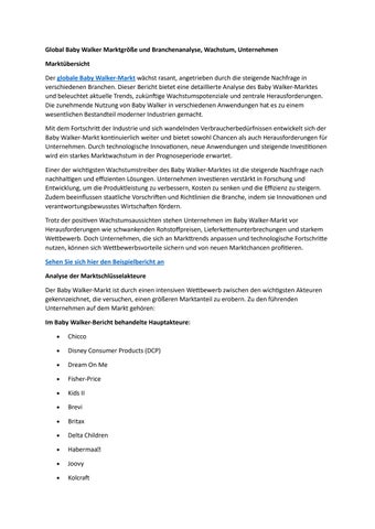Global Baby Walker Marktgröße und Branchenanalyse, Wachstum, Unternehmen