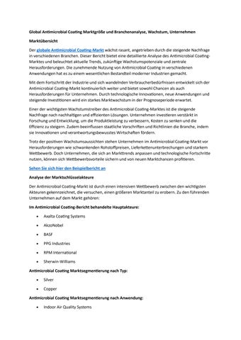 Global Antimicrobial Coating Marktgröße und Branchenanalyse, Wachstum, Unternehmen
