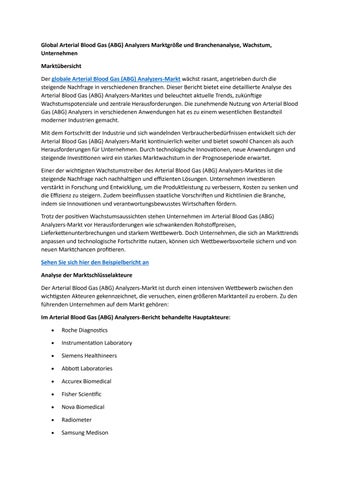 Global Arterial Blood Gas (ABG) Analyzers Marktgröße und Branchenanalyse, Wachstum, Unternehmen