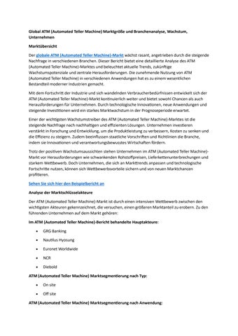 Global ATM (Automated Teller Machine) Marktgröße und Branchenanalyse, Wachstum, Unternehmen
