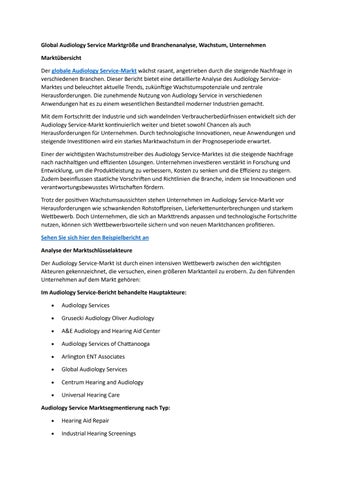 Global Audiology Service Marktgröße und Branchenanalyse, Wachstum, Unternehmen