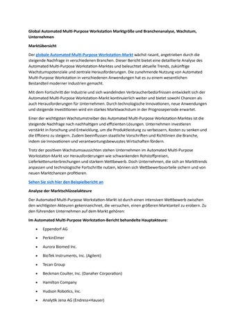 Global Automated Multi-Purpose Workstation Marktgröße und Branchenanalyse, Wachstum, Unternehmen
